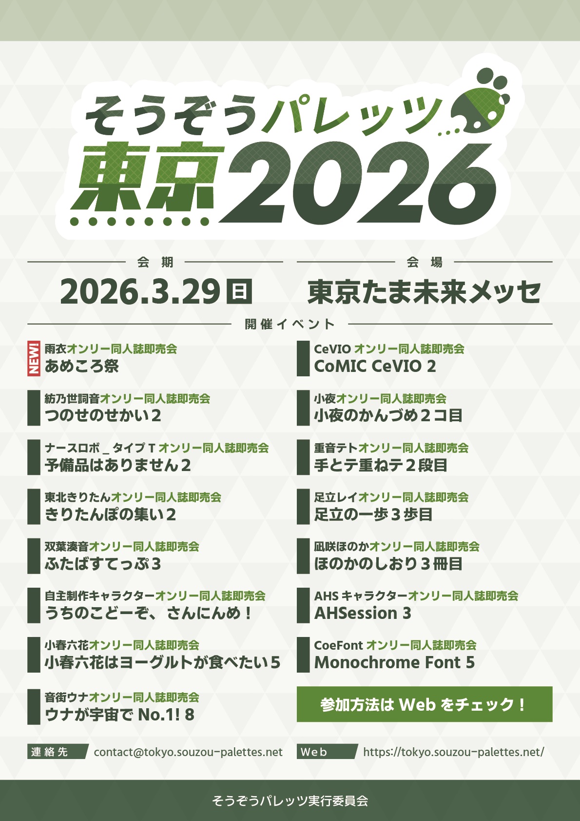 - 複数のオンリーイベントの集合体「そうぞうパレッツ (そうパレ)」です。